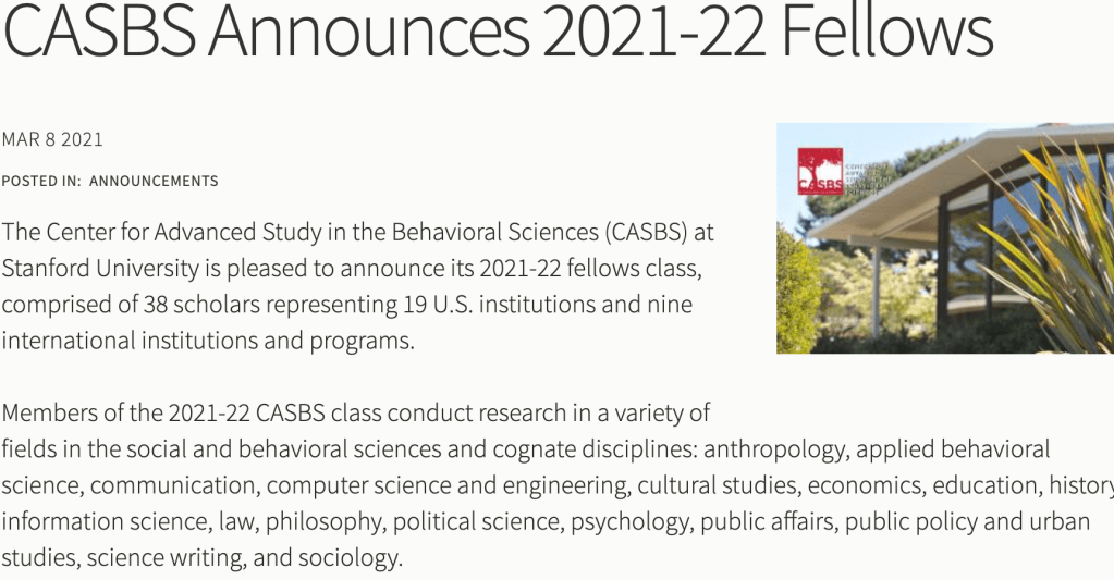 Dr. Jennifer M Gómez has been awarded the Stanford University CASBS Fellowship for the 2021-22 academic year!