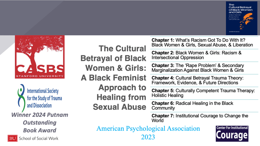 My lecture at McLean Hospital Grand Rounds, Cultural Betrayal, Sexual Abuse, and Black Women: The Role of Institutional Courage in Mental Health and Wellness, October 2022.