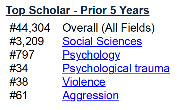 ScholarGPS recognizes Top Scholars for their outstanding performance in various fields, disciplines, and specialties. Strong publication record, impact, and quality of research places Jennifer M. Gómez in the top 0.5% of all scholars worldwide according to the most recent 2024 ScholarGPS rankings.